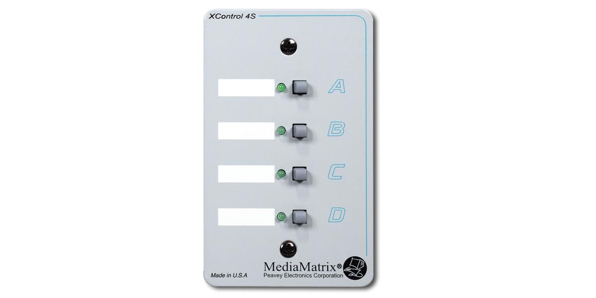 PEAVREY 的媒体矩阵系列产品 XControl 4S 是用于控制 X-Frame® 88 和 MM 系列产品的可编程壁挂式控制面板。基于 MWare® 和 XWare® 的软件, XControl 4S 可通过简单操作实现多种强大的功能。比如用作简单的音乐选择,信息播放以及配合媒体矩阵强大的预设功能实现场景调用等。得益于 XControl 的 RS-485 网络和灵活的供电方式选择, XControl 4S 的安装与使用十分简单。 XControl 4S 的这些特点使得用户对媒体矩阵系统的控制更加灵活便捷。